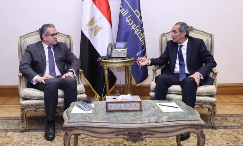 عقد الدكتور خالد العنانى وزير السياحة والآثار والدكتور عمرو طلعت وزير الاتصالات وتكنولوجيا المعلومات اجتماعا موسعا للوقوف على أخر مستجدات الأعمال فى مشروع رفع كفاءة سرعة خدمة الإنترنت بالمنشآت الفندقية بجميع أنواعها على مستوى الجمهورية ولاسيما تلك الموجودة بمدينة شرم الشيخ، كمرحلة أولى، استعدادا للتجهيزات السياحية لاستضافة مؤتمر الأطراف السابع والعشرين لاتفاقية الأمم المتحدة لتغير المناخ « COP27 ».