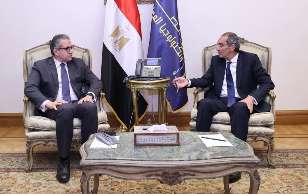 عقد الدكتور خالد العنانى وزير السياحة والآثار والدكتور عمرو طلعت وزير الاتصالات وتكنولوجيا المعلومات اجتماعا موسعا للوقوف على أخر مستجدات الأعمال فى مشروع رفع كفاءة سرعة خدمة الإنترنت بالمنشآت الفندقية بجميع أنواعها على مستوى الجمهورية ولاسيما تلك الموجودة بمدينة شرم الشيخ، كمرحلة أولى، استعدادا للتجهيزات السياحية لاستضافة مؤتمر الأطراف السابع والعشرين لاتفاقية الأمم المتحدة لتغير المناخ « COP27 ».
