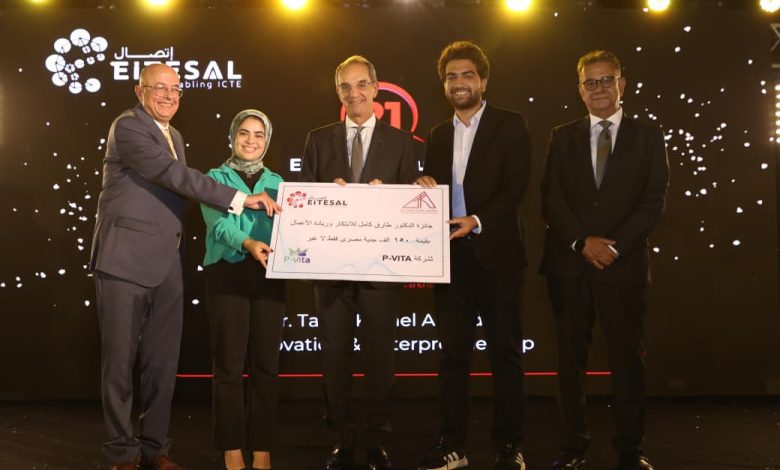 وخلال الاحتفالية، قام كل من الدكتور عمرو طلعت، والمهندس حسام مجاهد رئيس مجلس إدارة جمعية اتصال، والدكتور علي منيسي رئيس شركة SEE، بتسليم الجائزة إلى رائدي الأعمال محمد طارق ونجلاء محمد، مؤسسي شركة P Vita الناشئة.
