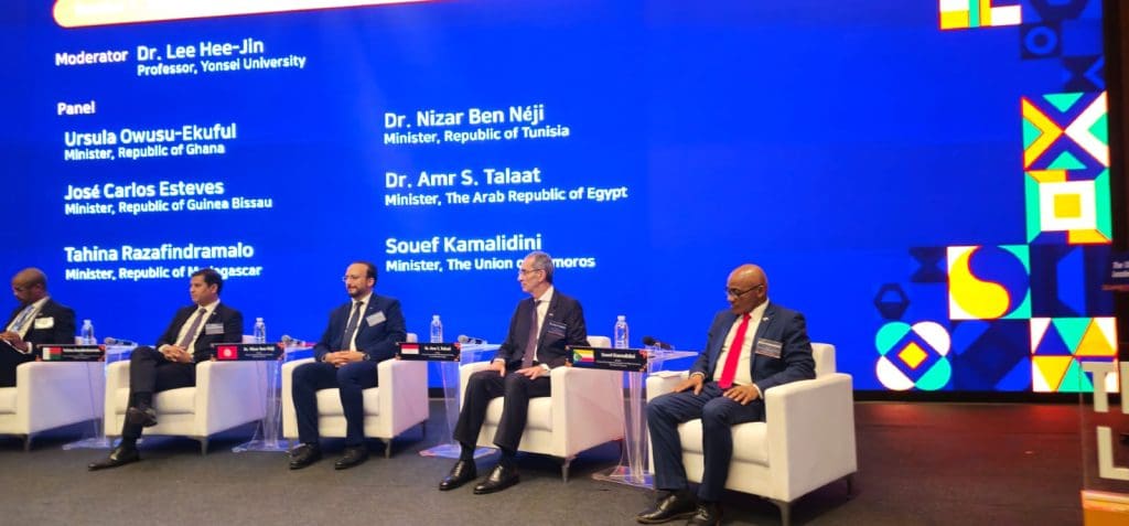 على هامش فعاليات المنتدى العالمى العاشر لقادة تكنولوجيا المعلومات والاتصالات الذى تستضيفه العاصمة الكورية سيول، بحث الدكتور عمرو طلعت وزير الاتصالات وتكنولوجيا المعلومات مع الدكتو لى جونغ هو وزير العلوم وتكنولوجيا المعلومات بجمهورية كوريا فتح آفاق جديدة للتعاون بين مصر وجمهورية كوريا فى مجالات الرقائق الالكترونية، والذكاء الاصطناعى. وذلك بحضور خالد عبد الرحمن سفير مصر لدى جمهورية كوريا.
