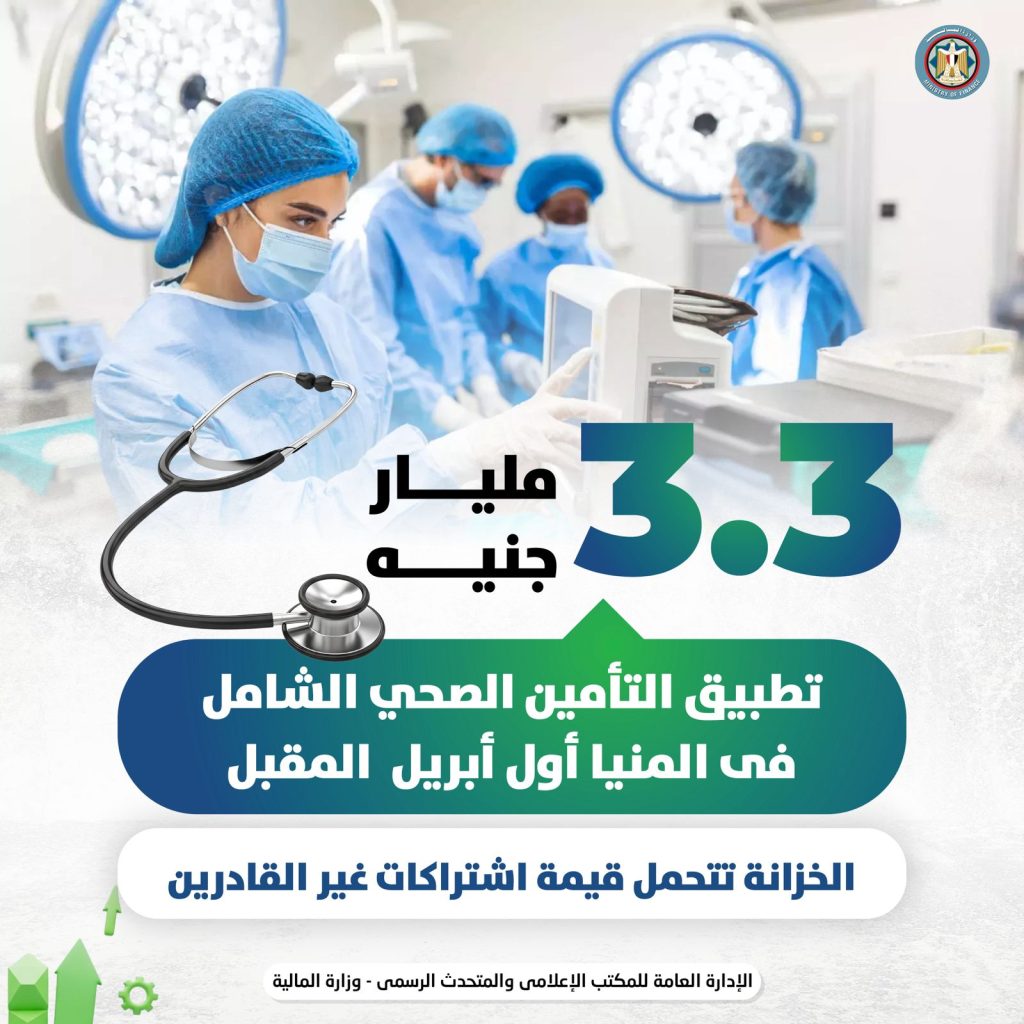 وأكد أحمد كجوك أن هناك 3.3 مليار جنيه لتبكير دخول التأمين الصحي الشامل لمحافظة المنيا، اعتبارًا من أول شهر أبريل المقبل، على أن تتحمل الخزانة قيمة اشتراكات غير القادرين بهذه المنظومة المتطورة بالمنيا.