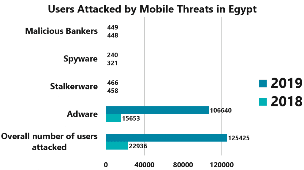 ارتفعت أعداد الإصابات بالبرمجيات الخبيثة التي استهدفت الهواتف المحمولة في مصر خلال العام 2019 بنسبة هائلة بلغت 447% مقارنة بالعام 2018، وفقًا لباحثين من كاسبرسكي. ووصل العدد الإجمالي للمستخدمين الذين تعرضت هواتفهم المحمولة لهجمات إلى 125,425 مستخدمًا. وشهدت تروجانات الإعلانات وبرمجيات الملاحقة stalkerware، على وجه الخصوص، ارتفاعًا ملموسًا في 2019، ما زاد من تعريض البيانات الشخصية لمستخدمي الهواتف الذكية للخطر. ويشكل هذا الرقم نحو 85% من جميع مستخدمي الهواتف المحمولة الذين تعرضوا للهجمات في المنطقة. جاء ذلك في سياق النتائج الرئيسة التي أوردها التقرير السنوي المعنون بـ “تطور البرمجيات الخبيثة المستهدفة للأجهزة المحمولة”، والذي وضعته كاسبرسكي.