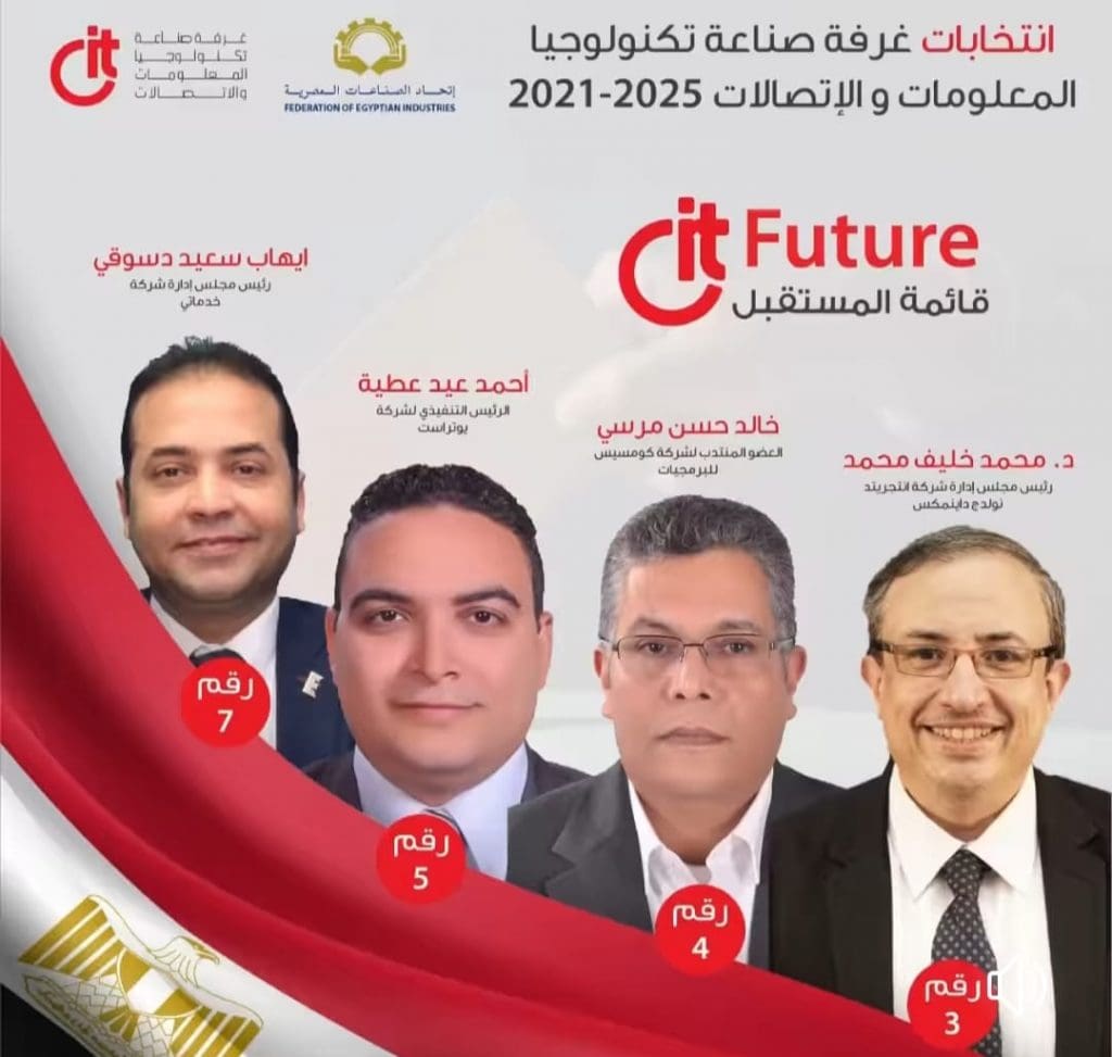لخصت قائمة المستقبل التي تخوض انتخابات غرفة صناعة تكنولوجيا المعلومات برنامجها الانتخابي وتضم القائمة كل من : أحمد عيد عطية رئيس مجلس الإدارة شركة يوتراست ، إيهاب سعيد رئيس مجلس الإدارة الشركة المصرية للخدمات المجتمعية “خدماتي” ، خالد حسن مرسي العضو المنتدب شركة كومسيس للبرمجيات ، محمد خليف رئيس مجلس الإدارة شركة انتجرتيد نولدج داينامكس ويضم البرنامج الانتخابي عدة عناصر هي: