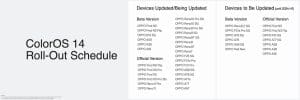 بدأ الإطلاق العالمي لنظام ColorOS 14 في الربع الأخير من 2023، وتم تحديث أكثر من 20 طراز من الهواتف الذكية، وبعد ذلك، سيتم إطلاق ColorOS 14 في سلسلة هواتف Reno11 5G وتم التحديث المزيد من الأجهزة كذلك.