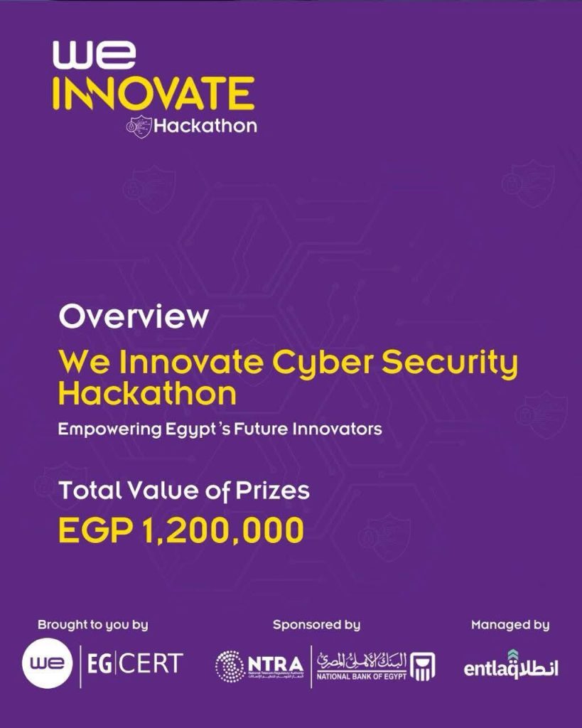 (EG-CERT)، من خلال قطاع تنمية صناعة الأمن السيبراني، وبالتعاون مع الشركة المصرية للاتصالات و البنك الأهلي المصري عن إطلاق هاكثون “نحن نبتكر 2025” WE Innovate بإجمالي جوائز مالية تبلغ 1,200,000 جنيه مصري.