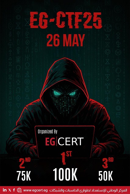 أعلنت فريق الاستجابة لطوارئ الحاسبات المصري EG-CERT عن فتح باب التسجيل للمشاركة في النسخة الثانية من المسابقة الوطنية في مجال الأمن السيبراني “التقط العلم – EG-CTF 2025″، والتي تُقام يومي 25 و26 مايو 2025 على هامش فعاليات مؤتمر CAISEC 2025.
