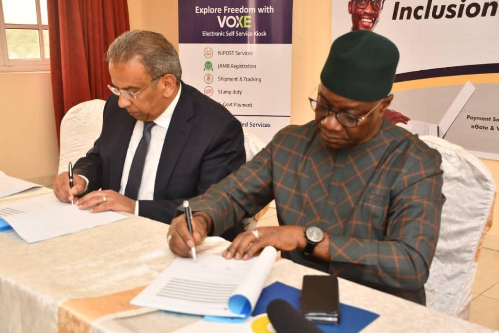 وقام بتوقيع الأتفاقية عصام الصغير الرئيس التنفيذي لشركة eGate و أليكس ماكريا نائب الرئيس التنفيذي لشركة VISA و د. أسماعيل أديوسي المدير العام للبريد النيجيري NIPOST.