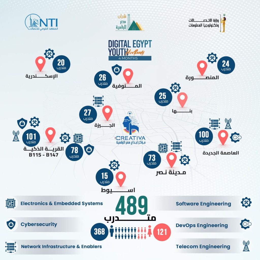 وتشمل المبادرة عدة مسارات تقنية متخصصة، من بينها: الإلكترونيات والأنظمة المدمجة، الأمن السيبراني، البنية التحتية للشبكات وممكناتها، هندسة البرمجيات، هندسة DevOps، وهندسة الاتصالات، إلى جانب برامج متكاملة لتنمية المهارات الشخصية واللغوية، فضلًا عن تدريب عملي داخل الشركات لمدة شهر بإجمالي 120 ساعة تدريبية.