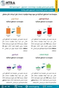 - فودافون: من أصل 81 منطقة (مدينة وحي) تم اجراء اختبارات القياس عليهم تم رصد تحسن في متوسط عدد المناطق التي تعاني من سوء جودة مؤشرات خدمات الصوت بنسبة 25% خلال الربع الرابع لعام 2022 مقارنة بنفس الفترة لعام 2021، لتبلغ 15 منطقة متـأثرة لشــركة فـودافون.