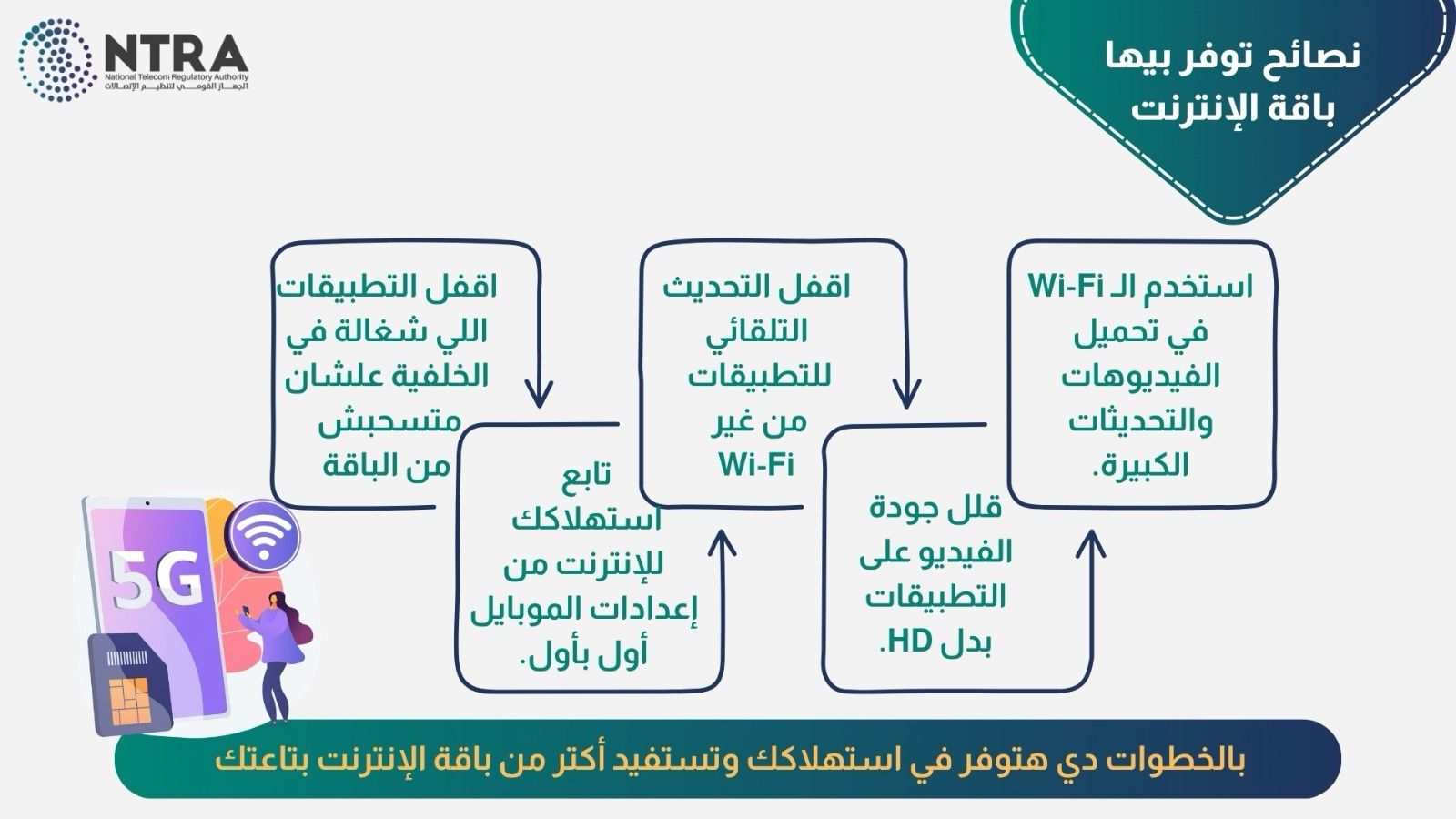 أصدر الجهاز القومي لتنظيم الاتصالات على منصات التواصل الاجتماعي مجموعة من النصائح والإرشادات الهامة لعملاء خدمات الإنترنت في مصر، بهدف ترشيد استهلاك باقات الإنترنت وتحقيق أقصى استفادة ممكنة منها، خاصة في ظل تزايد الاعتماد على الخدمات الرقمية.