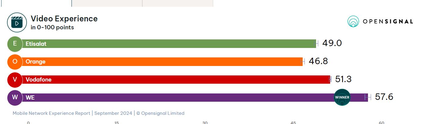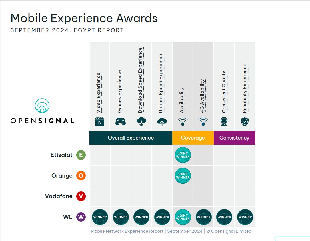 أكد تقرير حديث لشركة Opensignal حصلت عليه نسخة منه ICTBusiness وقال التقرير الذي صدر اليوم إن شركة WE تتصدر تجربة الهاتف المحمول في مصر وأثبتت الشركة تفوقها من جديد بفوزها بجميع الجوائز الأربع لتجربة الشبكة الشاملة، والتي تقيس الأداء عبر جميع أجيال تجربة الهاتف المحمول، بما في ذلك السرعات، وتجربة الفيديو، وتجربة الألعاب. هذا يعني أن مستخدمي WE لا يتمتعون فقط بأسرع سرعات التنزيل والتحميل، بل يحصلون أيضًا على أفضل جودة تجربة أثناء بث الفيديوهات حسب الطلب ولعب الألعاب متعددة اللاعبين عبر الاتصالات الخلوية.