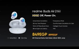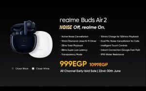 حيث تعدBuds Air 2 NEO  realme أول سماعة أذن لاسلكية تستطيع إلغاء الضوضاء حتى “25 ديسيبل” بسعر 899 جنيه فقط. وهو ما يمثل نقلة كبيرة في هذا المجال.