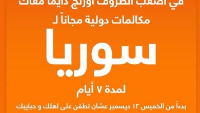 في أصعب الظروف أورنج دايما معاك …7 أيام مكالمات مجانية للأشقاء في سوريا