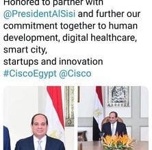 رئيس سيسكو العالمية يغرد على تويتر بعد لقاء “السيسي”