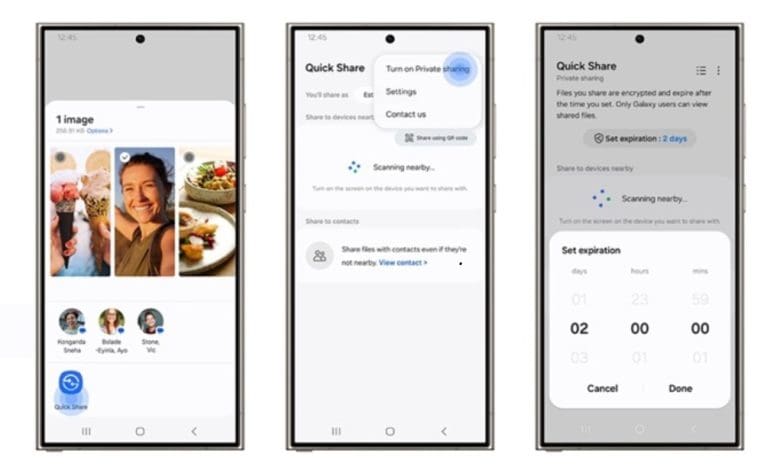 ومن أجل ذلك، طورت سامسونج حلًا فعالًا ودمجه في هاتفها الذكي Galaxy الذي أصبح مزوداً بوظيفة “المشاركة الخاصة” التابعة لخاصية “المشاركة السريعة” أو “Quick Share”، والتي تتيح للمستخدمين مشاركة المحتوى الخاص بسهولة وراحة البال مع ضمان الحفاظ على الخصوصية.