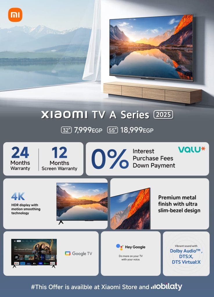 أعلنت شركة شاومي لأول مرة في مصر عن إطلاق عائلة تلفزيونات Xiaomi TV A Series 2025 بتقنيات مبتكرة وتصنيع محلي مصري، مما يعزز التزام الشركة بتقديم أحدث الابتكارات بأسعار تنافسية تلبي احتياجات السوق المحلي.